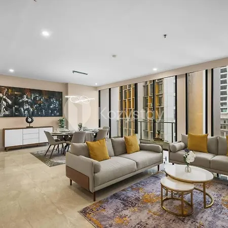 このアパ-トは器具でいっぱいの台所に電子レンジ,冷蔵庫 と台所用品の他にバルコニ-,ワ-クデスク と衛星放送チャンネルの薄型テレビを完備しています. アパ-トの特色は,ビデ と独立したトイレを備えた3室のベッドル-ムと3室のバスル-ムです.